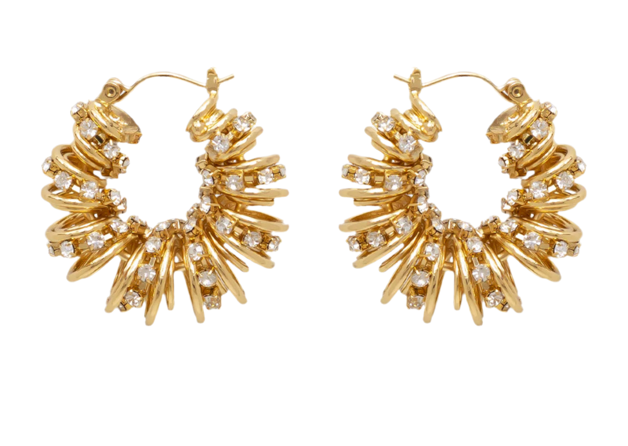 - High End Chic Fashionable earrings. These gold plated hoops earrings measure 1.25" wide and 1" Tall. These gorgeous waterproof earrings are sturdy, very upscale to the touch, have great texture, lightweight and super easy to wear.