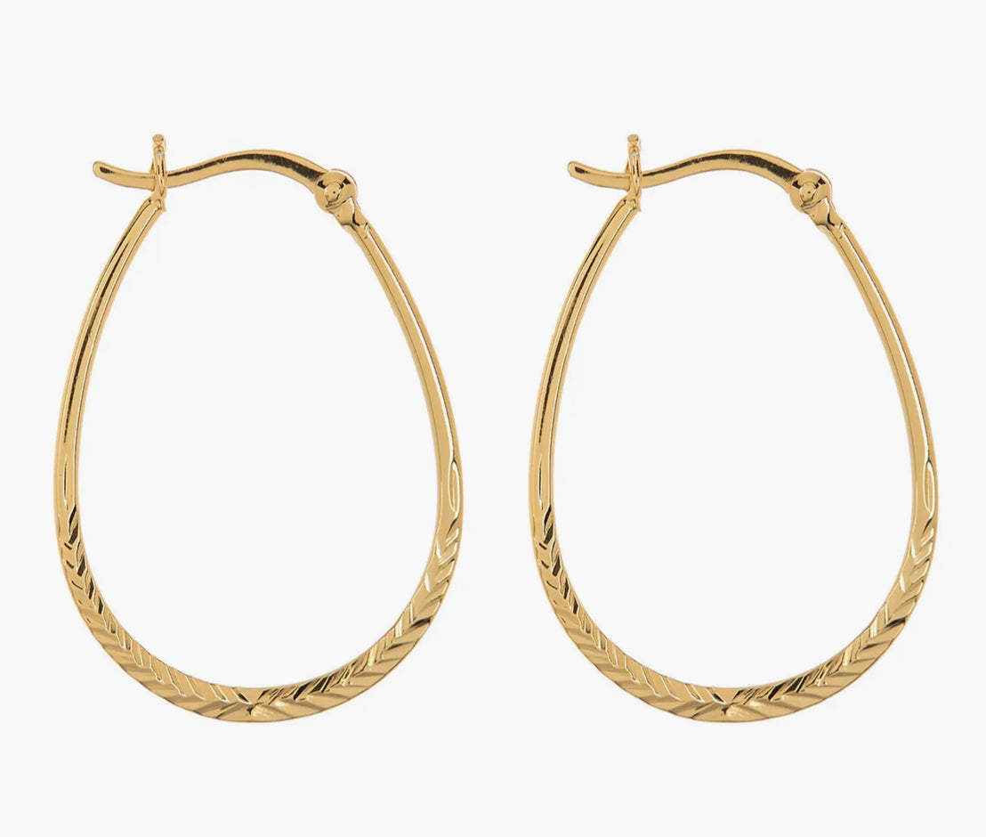 Sleek and timeless, these horseshoe-inspired hoops feature a refined silhouette with a textured finish that catches the light beautifully. Designed for both elegance and comfort, they secure with a hinge and snap-post closure.
